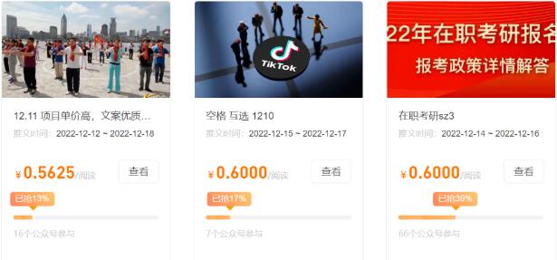 公众号另外一种变现方式叫“CPC”,即按照阅读量计算钱,平均一个阅读量能有3-5毛左右,100个阅读就是30到50块。适合刚刚起步的小号,哪怕几百、几千粉丝也能变现。