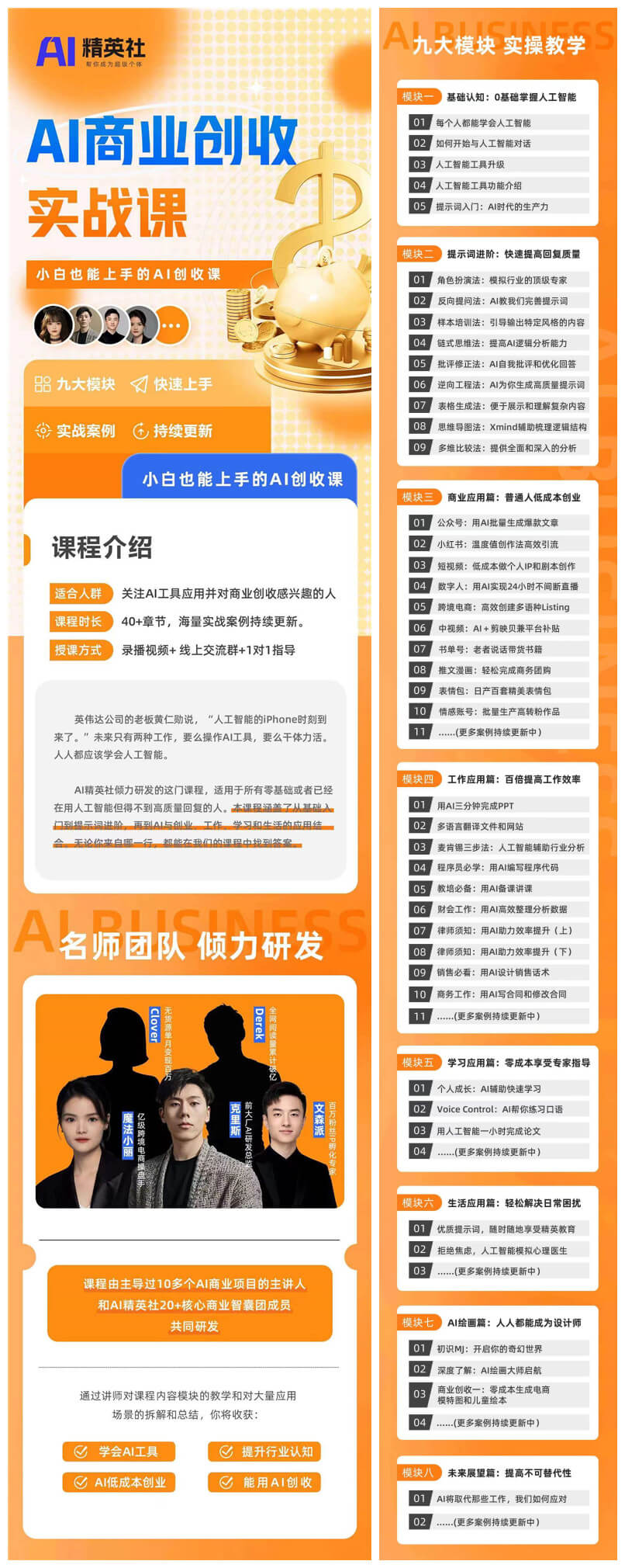 AI精英社·《AI商业掘金实操课》小白也能上手的AI创收课