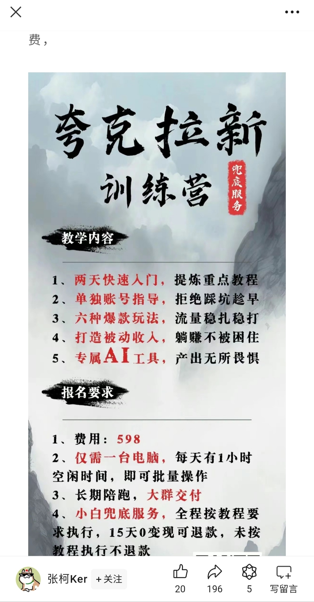 张柯ker《夸克网盘拉新实战营》价值598!全网最低门槛,日入千元,手机操作轻松上手