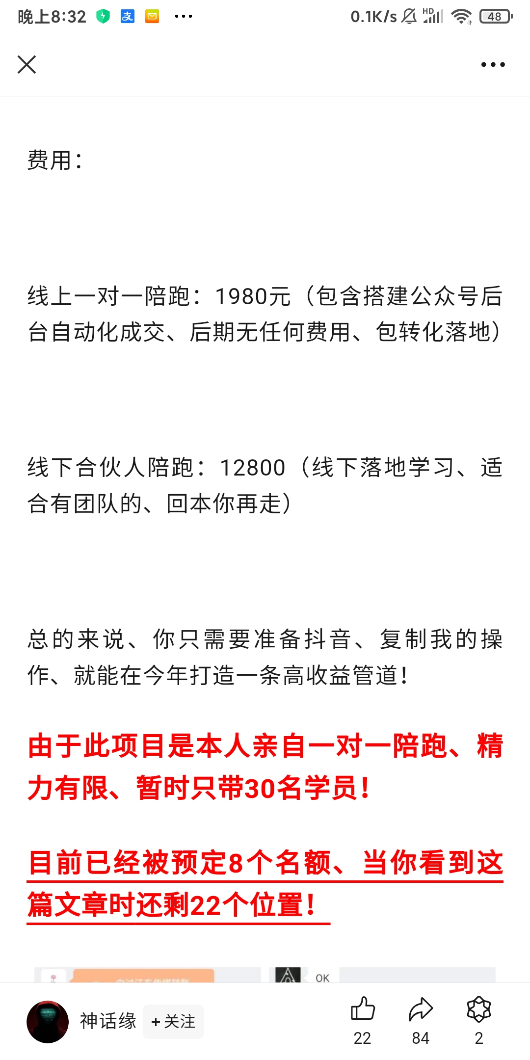 1、抖音引流致公众号收一次神贴资料费(9.9 元-88.8 元、价格越低转化越高)