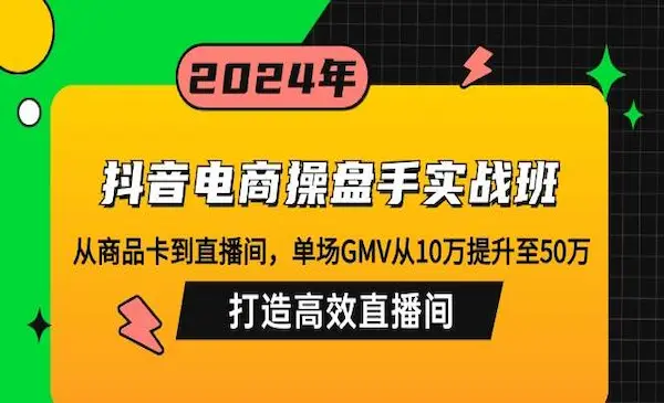 副业项目库 » 《抖音电商操盘手实战班》从商品卡到直播间,单场GMV从10万提升至50万