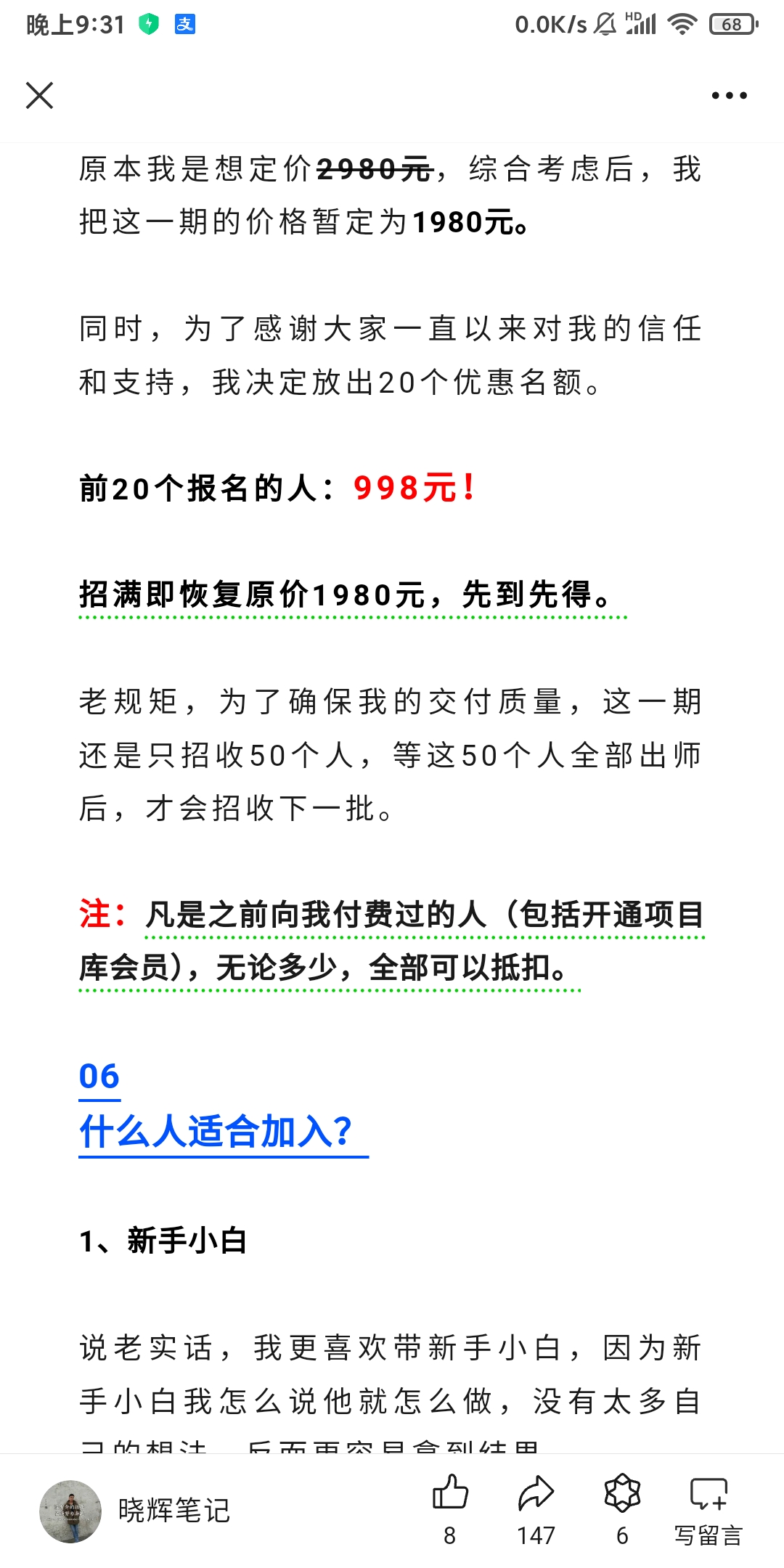 晓辉《公众号引流创业粉教程》价值998