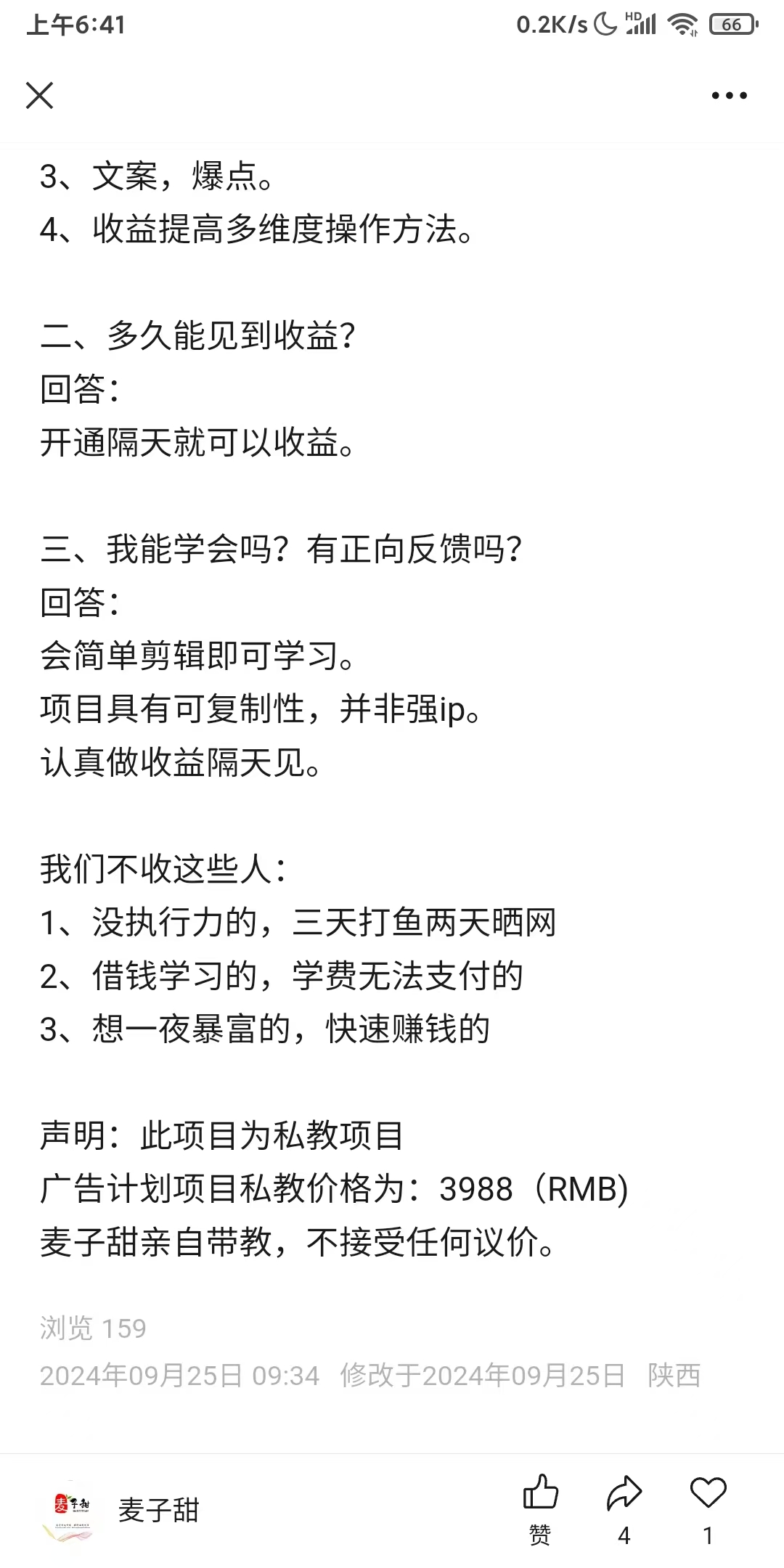 麦子甜《广告计划项目(抖音快手网易)》价值3988