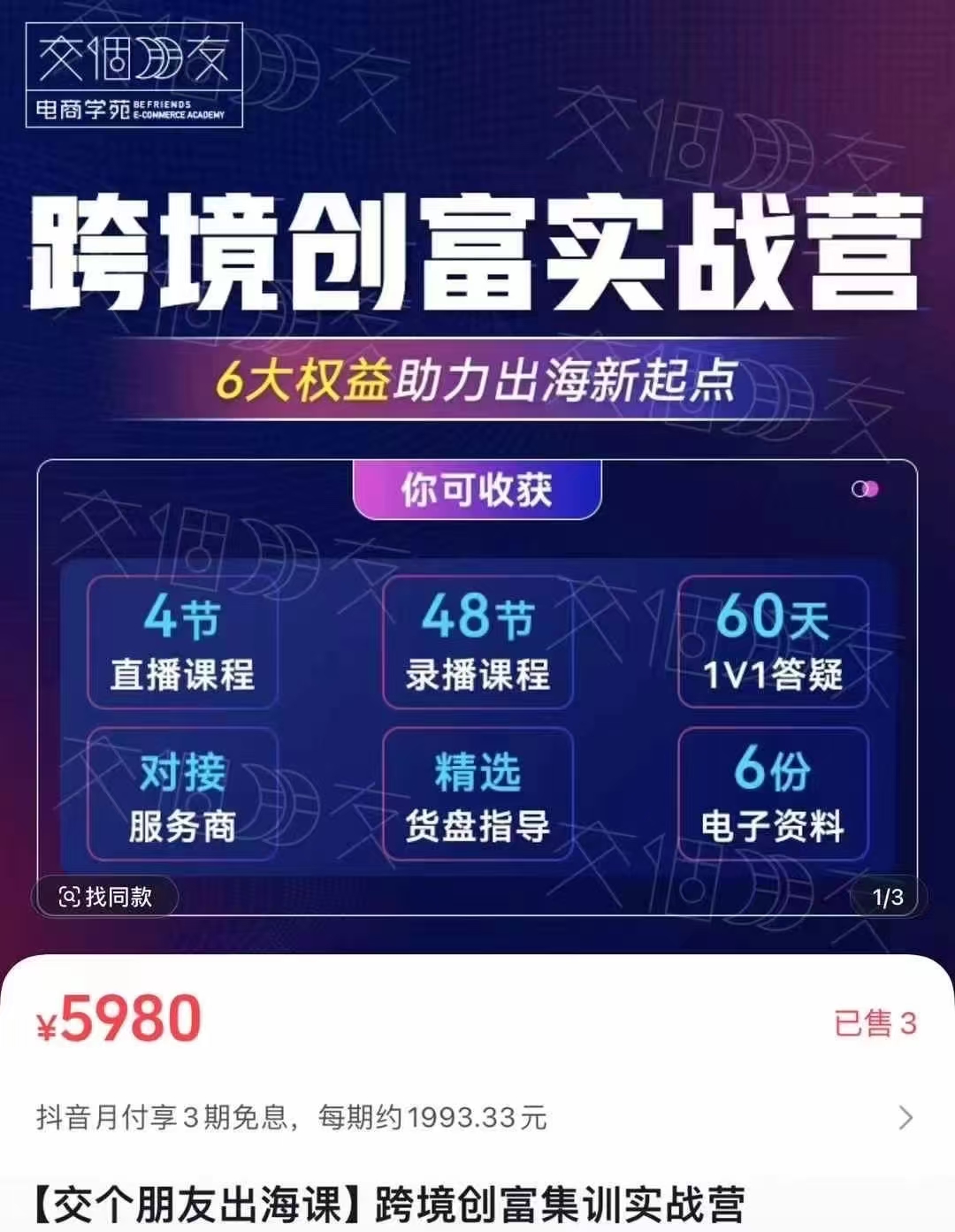 副业项目库 » 交个朋友《跨境创富实战营》价值5980!独立站/TikTok/谷歌广告/YouTube,精准选品与高效引流