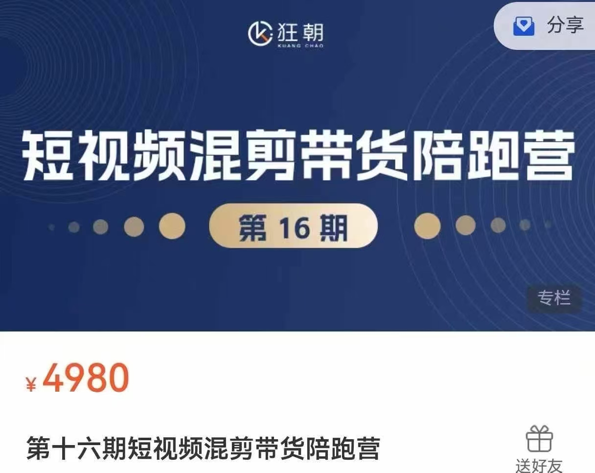 副业项目库 » 狂潮学苑《短视频混剪带货陪跑营》(第16期),价值4980