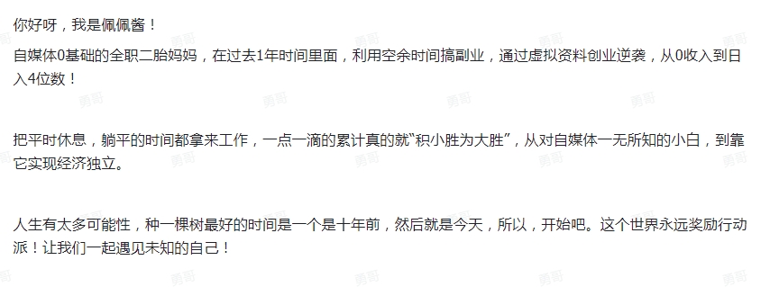 admin 社群精华 2025-05-14 从全职妈妈到月入5位数,我靠虚拟资料打通0-1 VIP免费 永久VIP免费当前隐藏内容需要支付29.9积分已有7人支付 登录购买 副业项目库内容全部来自网络,版权争议与本站无关,如果您认为侵犯了您的合法权益,请联系我们删除,并向所有持版权者致最深歉意!本站所发布的一切学习教程、软件等资料仅限用于学习体验和研究目的;请自觉下载后24小时内删除,如果您喜欢该资料,请支持正版!副业项目库 » 从全职妈妈到月入5位数,我靠虚拟资料打通0-1
